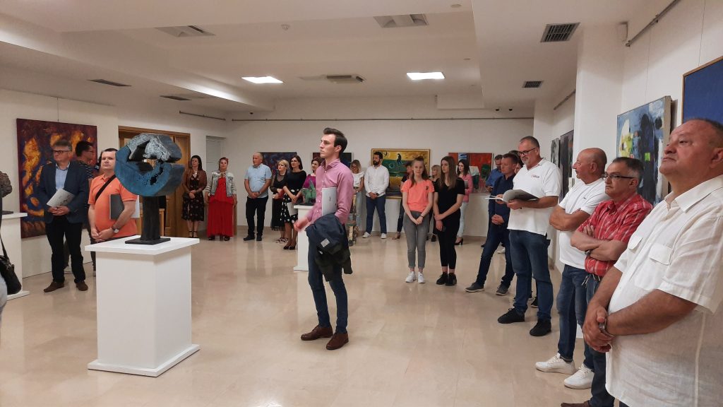 Na izložbenom postavu pod nazivom Grupa CONTRA – Dva desetljeća likovnog stvaralaštva i djelovanja, s 54 rada predstavili su se: Vladimir Vlatko Blažanović (rođ. Donji Hasić kod Bosanskog Šamca), Žorž Draušnik (Zagreb), Tihomir Lončar (Vinagora kraj Pregrade u Hrvatskom zagorju), Vladimir Meglić (Donji Pustakovac u Međumurju), Željko Mucko (Koprivnica), Goran Petrač (Ludbreg), Velimir Rački (Zagreb), Davorin Radić (Hrvatska Kostajnica) i Petar Ujević (Krivodol kod Imotskog). Mjesta rođenja sama po sebi govore da je riječ o skupini umjetnika s različitih strana koje ujedinjuje sukus umjetničkih pogleda. Izložbeni postav je otvorila njegova autorica Biserka Rauter Plančić, a u programu su nastupili – prof. Monija Jarak Mikulić, mezzosopran, te solisti Tomislav Perić, bariton i Danijel Perić, također bariton, uz pratnju Marijane Pavlović na klaviru. Izložba je otvorena do 18. srpnja 2020.