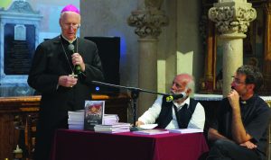 A onda se Tin Kolumbić osvrnuo na knjigu povezavši je s knjigom Hannah Arendt „Ljudi u mračnim vremenima“. Istaknuo je kako i u najmračnijem vremenu postoje svijetli trenutci poput svjetionika na moru. Kazao je kako i ova knjiga može biti svjetionik koji će svjedočiti na najbolji mogući način dobrotom, ljubavlju, a posebno svjetlošću i u ovom vremenu u kojem sada živimo. Kazao je kako „za biskupa Slobodana nema nevažnih stvari, posebice nema ispraznosti, sve je zapravo bitno, nema velikih i malih događaja. Posebno treba istaknuti zabilježene susrete u ovoj knjizi, koji nam otkrivaju da biskup Slobodan isti značaj daje susretima s uglednim i uvaženim osobama kao i s tzv. običnim i ‘malim’ ljudima’. Istaknuo je kako je u teškom ratnom vremenu biskup Štambuk promicao toleranciju i poštivanje drugih i različitih, čak i prema članovima zajednice iz čijih redova su u Hrvatsku upadali agresorski vojnici naoružani mržnjom i stvarnim oružjem. Spomenuo je i Štambukove „riječi o suosjećajnosti, koja je jedna od najznačajnijih sastavnica, odnosno vrlina ljudskosti“ i kršćanskog ponašanja. Napomenuo je kako u samostalnoj i demokratskoj hrvatskoj biskup Štambuk Crkvu i državu ne vidi odvojene. „U zapisu o toj temi biskup Štambuk kratko i jasno zapisuje: ‘Crkva i država trebale bi biti sestre. Jedna se brine za tijelo, a druga za dušu.“ Kolumbić navodi jedan zapis kao znakovito „svjedočanstvo biskupova djelovanja u kršćanskom duhu“ o osudi i prijeziru nečijih nedjela, zločina i grijeha, ali ne i osudi počinitelja svega toga. Istaknuo je i kako „biskup Štambuk nikad nije govorio ‘prigodničarski’, već je isticao vrjednote koje su značajne i bitne za život“. Osobito je govorio „o ljubavi prema gradu u kojemu živimo i domovini Hrvatskoj“. U svojim govorima upozoravao je „na ono što nažalost nedostaje mnogima od nas, a to je svijest o sebi“. Ta svijest osobito je potrebna kad je u pitanju „odnos velikih i moćnih prema tzv. malim nacijama i državama“ što se može izraziti latinskom izrekom: „Quod licet Jovi, non licet bovi“. Tu se pokazuje kako je problem ponajprije u nama: „Drugi su nam krojači, i sastavljači, i ravnatelji, i suci, suci osobito. A mi smo njihovi vrlo ‘lojalni’ i jaki odvjetnici i zagovornici, umjesto da budemo svoji“, poručio je Tin Kolubić. Nakon njegova izlaganja „Bodulke“ su otpjevale pjesmu „Dajem ti srce, zemljo moja“.