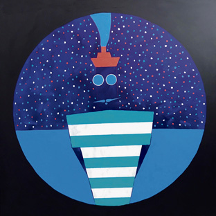 Gospodine Ostrman, u posljednje ste vrijeme ozbiljno fokusirani na realizaciji ciklusa s motivom mora, većinom plavih, zelenih s nizom brodića na površini. Dokle su ili do koje su točke brodovi doplovili? Što je cilj plovidbe, susret s drugim brodom na pučini ili nedohvatljiva obala?